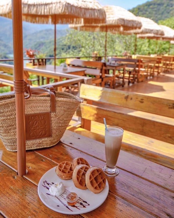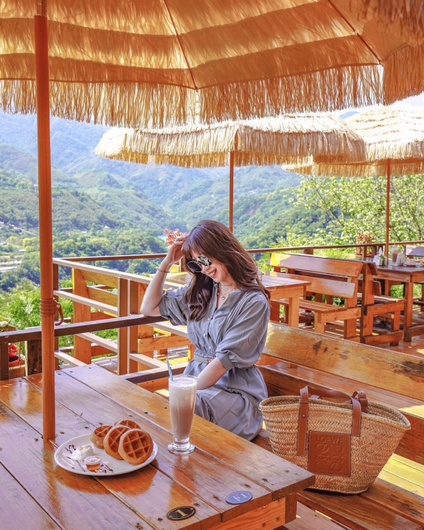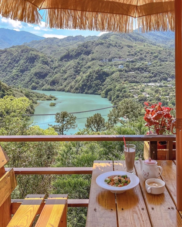 位在桃園復興鄉的仙境餐廳「森鄰水岸景觀咖啡館」就坐落在角板山公園下方,海拔約350公尺,從店內可以180度完整鳥瞰大漢溪「最美的轉彎」,正面欣賞對岸的溪口台地河階及溪口吊橋,被公認擁有角板山「最佳景觀視野」,此生必看風景千萬不能錯過!