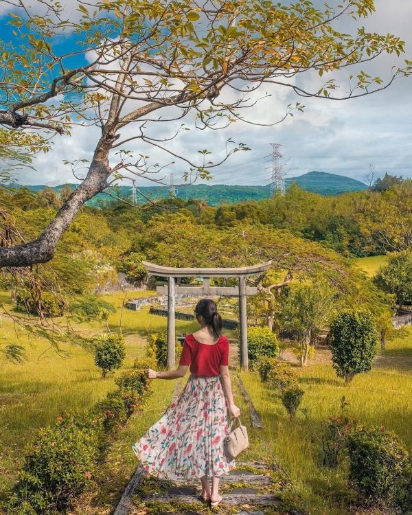 瓊麻工業區裡除了展示恆春瓊麻工業的發展歷史、設備和建築遺跡外,還有從古至今所殘留下來的日本神社遺址,裡面還有一座鳥居,搭配藍天白雲和少許的花朵樹木,看上去讓人有種療癒身心的感覺。