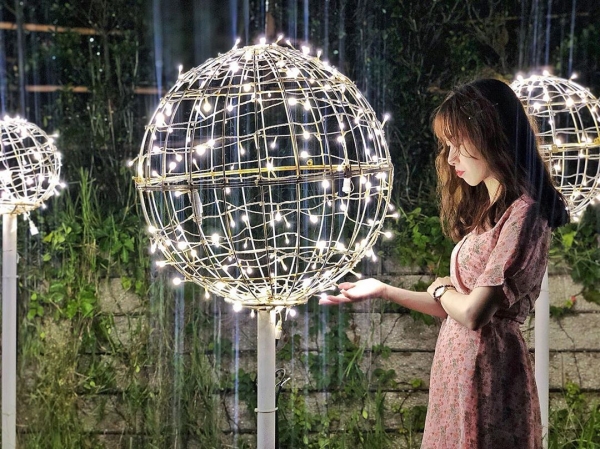 地上還有大大小小的光球,他們會不停變化顏色,這邊除了情人約會也很適合全家大小一同出遊散步喔!