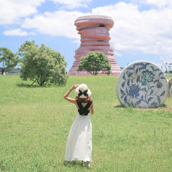 新北市鶯歌的「三鶯藝術村」有個超巨大的「粉紅色陶土手拉坏」,把鶯歌最著名的陶瓷工藝以這麼夢幻的方式來呈現,不僅能順勢推廣在地文化也成為IG熱門打卡景點,在手拉坏裡順著階梯走,有個奇幻世界使人瞬間被包覆著變得像小精靈一樣可愛,在藍天白雲下搭配唯美粉色流線弧度,拍出來的照片超壯觀夢幻!在綠意盎然的草皮上也設置了許多豎立精緻的陶瓷杯盤,站再一起拍照人就會順間變得很渺小,讓人有種跑進愛麗絲夢遊仙境裡一樣有趣!