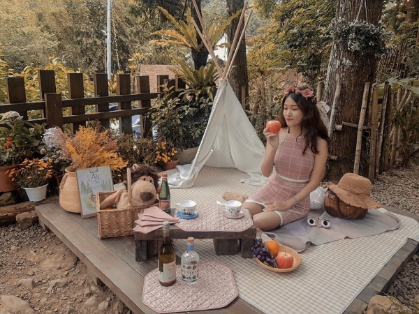 用餐區有分為沙發區、帳篷區、野餐區及一般座位區,每一區都有不同的特色,處處都能留下美麗的照片,帳篷內部設計走波希米亞風,還配有電扇及移動式冷氣,夏天來也OK!