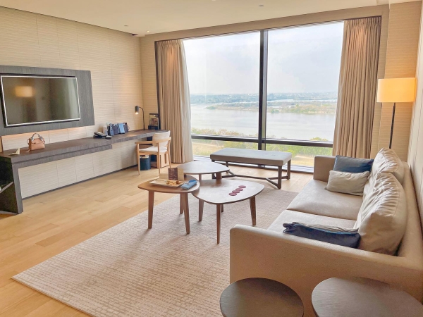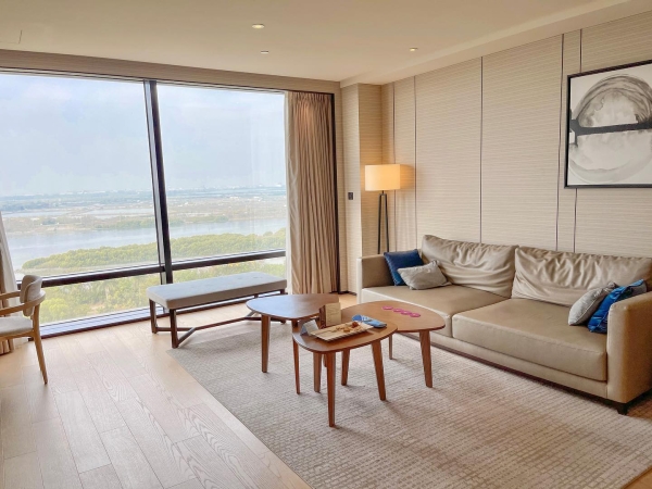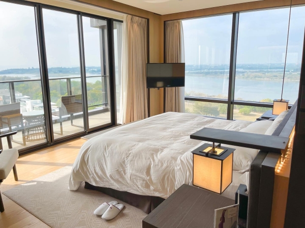 打開房間最吸引目光的就是這片超大落地窗,能夠眺望安平老街、台江國家公園、四草綠色隧道等,超美景觀讓人怎麼看都不會膩!酒店裡的房間都是10坪以上的大空間,設計風格高質感簡單舒適,不管是坐在客廳還是躺在床上,都能欣賞到絕美湖景。