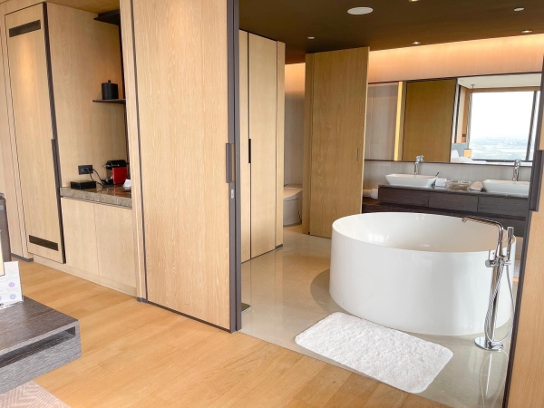 房內各項設施很齊全,浴室也非常寬敞還有一個超大浴缸,能一邊泡個舒服的熱水澡一邊欣賞著台南絕美景色,如此愜意的氛圍最適合這著連假假期了!
