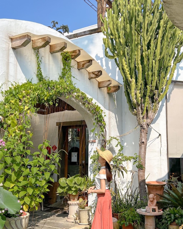在田尾的「綠海咖啡館」有著以地中海風格打造出的超浪漫白色建築,外觀充滿著綠色植物給包圍,在視覺上就像是森林版的小希臘一樣浪漫,內部還有超夢幻的花藝造景,坐在裡面品嚐著美味的下午茶超療癒!