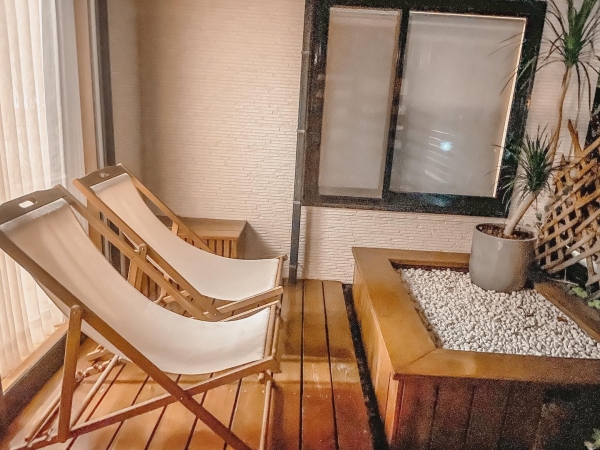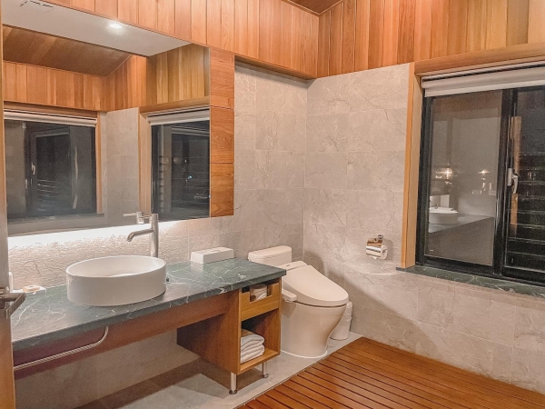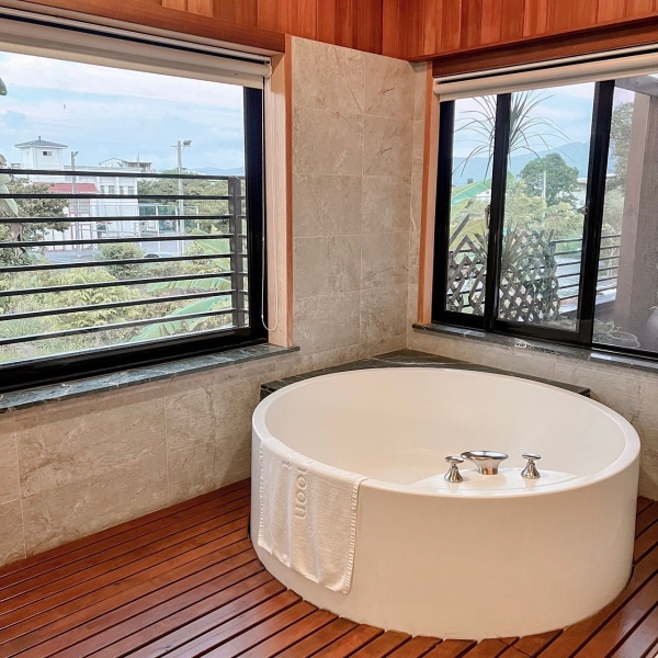 衛浴空間也毫不遜色,採乾溼分離還有個超大浴缸,泡個泡泡浴欣賞窗外美景,一定能讓旅客們暫時忘掉工作上的麻煩事!戶外空間還有兩張木製帆布椅,夜晚時間坐在上面喝著茶欣賞星空超級治癒!