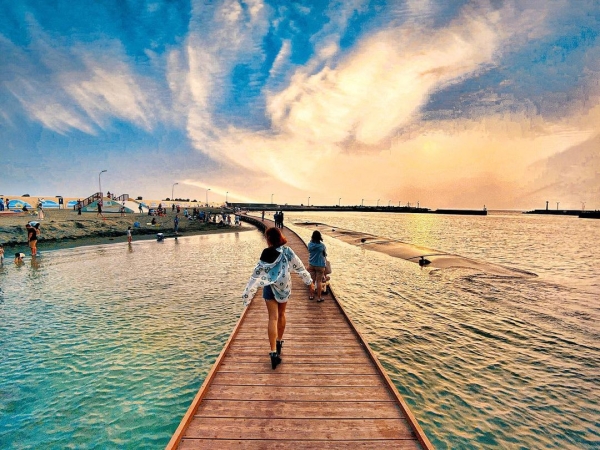 高雄最著名的就是港口,怎麼能錯過海邊景點呢!小編推薦這位於高雄彌陀區的「海岸光廊」,園區占地約1.5公頃,包含海景瞭望台、兒童遊憩區、濱海大道、水中廊道、堤防步道、彩繪堤防、3D彩繪地坪等區域,超美麗的木棧道吸引了許多慕名而來的遊客打卡拍照!也是熱門的親子景點,傍晚來到這邊還能欣賞浪漫夕陽美景呢~
