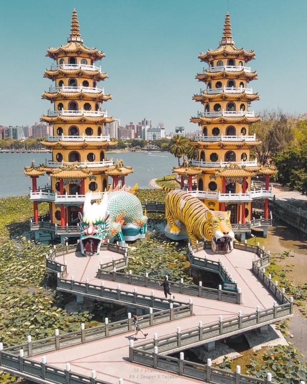 而在蓮池潭最著名的地標就是「龍虎塔」了,遠遠的就能看見對稱式的建築還有前方兩隻超可愛的守護獸,近看則是更加壯觀!充滿東方傳統宗教色彩的地方,也曾被CNN報導為傳奇景點,台灣的驕傲不能錯過!
