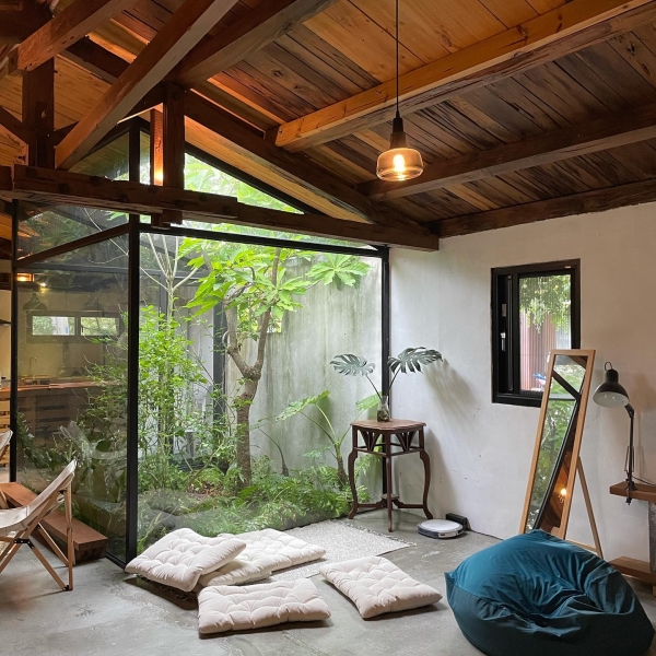 「小雨林」是民宿老闆花了一年多的時間把老倉庫整理打造而成的森林系民宿,保留了原本的紅磚牆和木造屋頂,在建造了一個種植各式各樣花草的戶外泡湯空間,使整體營造出了超美熱帶雨林風的入住空間。