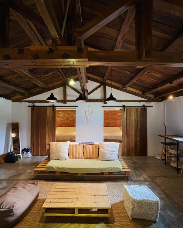 室內空間很寬敞,超適合坐著欣賞窗外景色安靜的思考著人生百態,房型有「小雨林」和「小穀倉」兩種類型,設計風格上以簡單舒適為主,四面白牆、沒有過多擺設和簡單乾靜的地墊、懶人椅,在明亮整潔的空間充滿了療癒的氛圍。