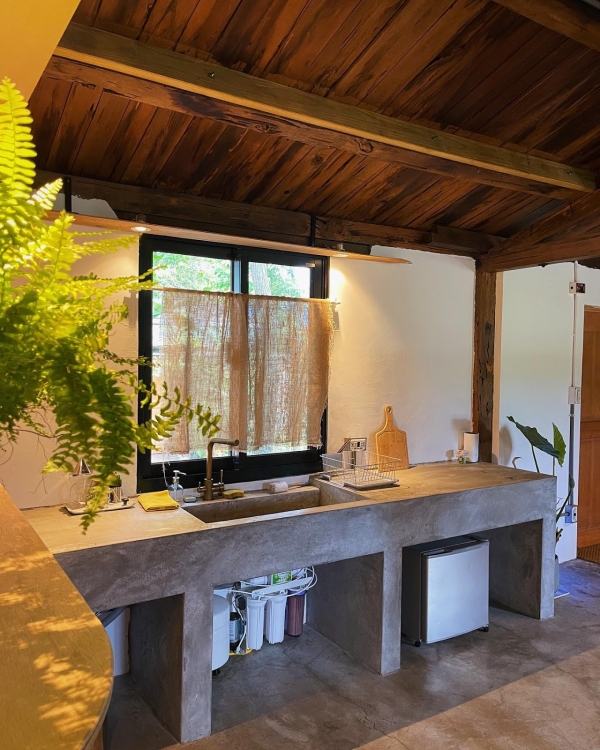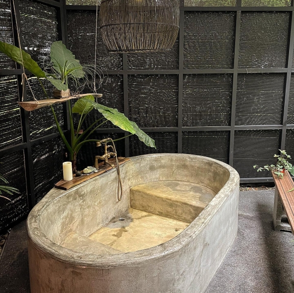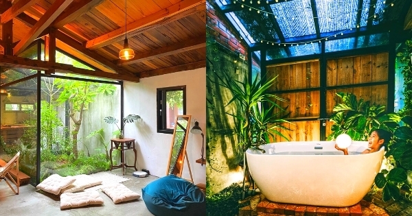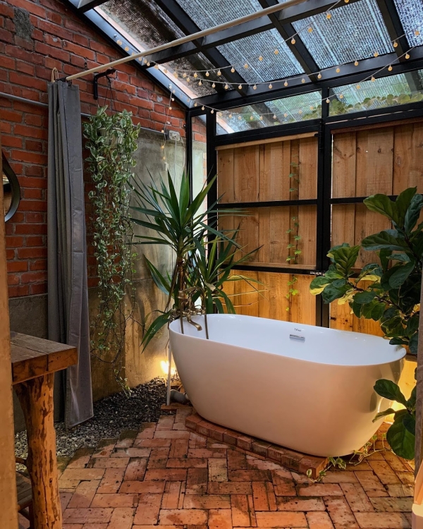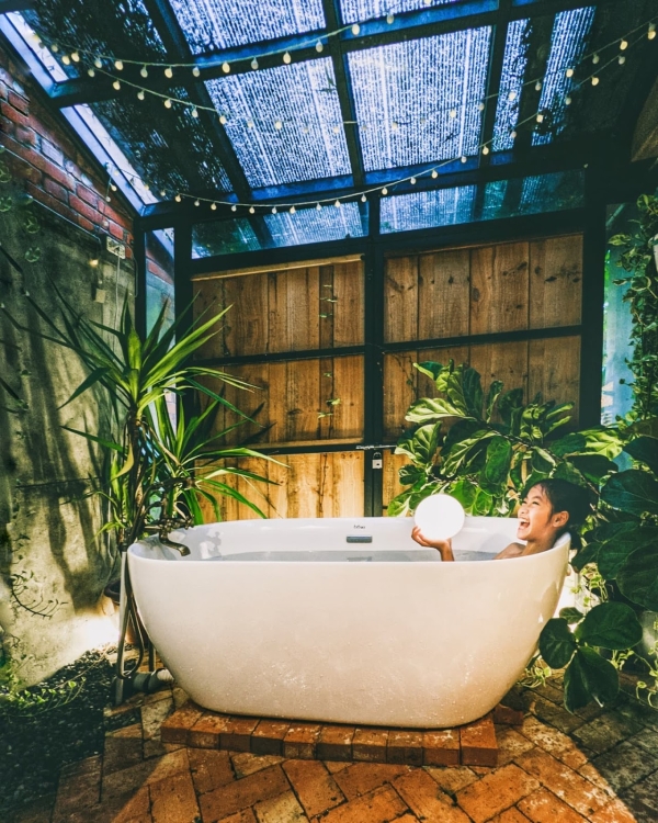 民宿裡最特別的就是乾濕分離的衛浴空間,有造型特別的浴缸,泡湯屋裡還用了超多綠植營造出熱帶風格的氛圍感,讓在裡面泡澡的旅客身處在峇里島度假的感覺,超級Chill~