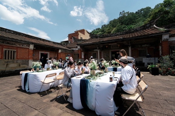 逛完老街後,大家肚子都餓壞啦!我們在偌大的客家三合院內品嚐著獨家竹簍料理,都是嚴選新竹在地食材,並沉浸在陳永淘老師的歌聲中,一桐享受浪漫宴席!