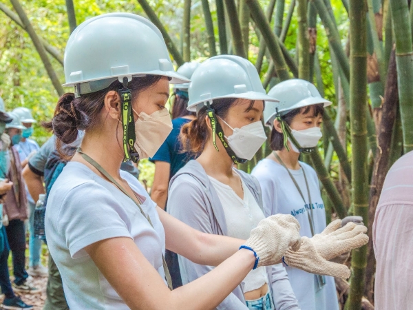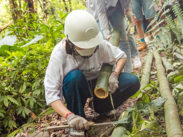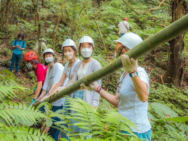 最難忘的絕對是手作步道體驗啦!從來沒想過我們會拿起鋤頭、鋸子伐竹,大家共同接力完成搬運石頭、竹子的環節,為山壁一步一腳印的建造天然圍籬,就算滿頭大汗、被蚊蟲叮咬也覺得值得,我想這經驗一輩子都忘不了吧!
