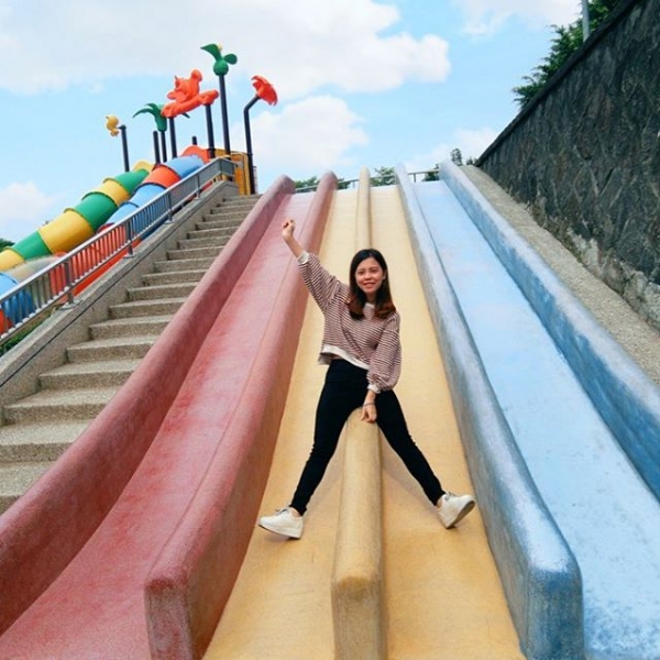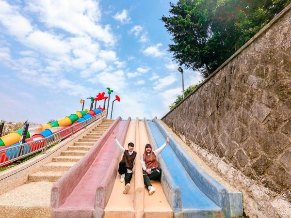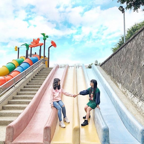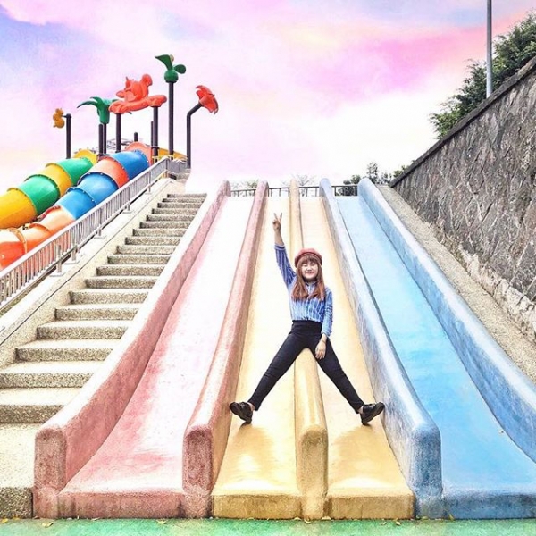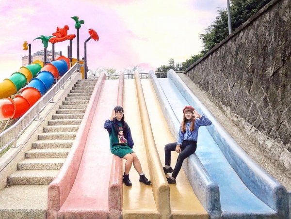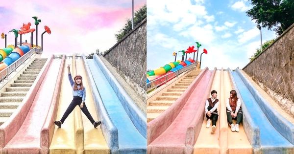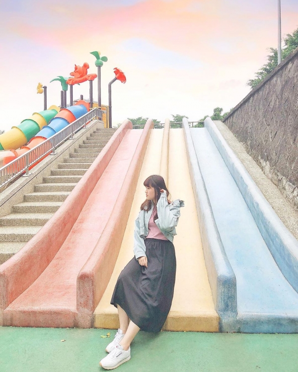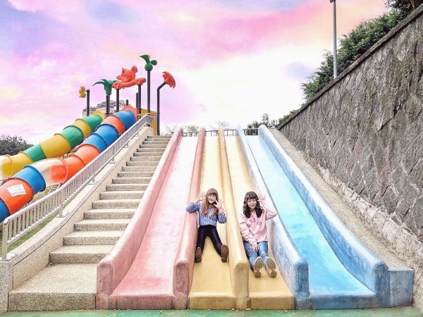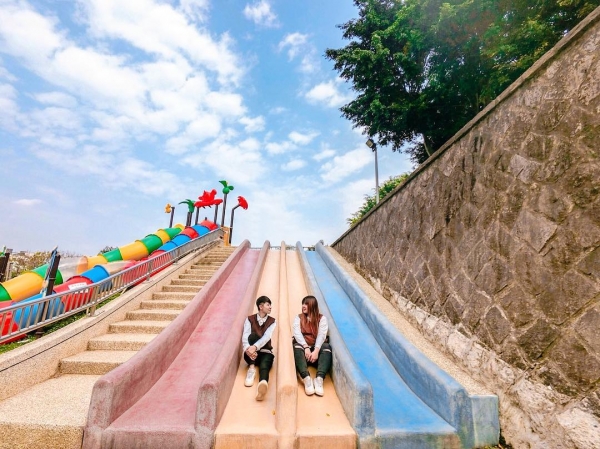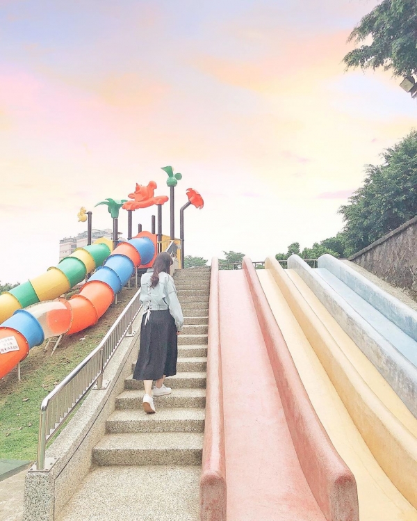 桃園最大的公園「陽明運動公園」去年整修完成後,新增了許多可愛又繽紛的設施,其中有一座超大的彩色磨石子溜滑梯,因為拍起來繽紛可愛引發瘋拍潮,也讓陽明運動公園變身成為熱門拍照景點!