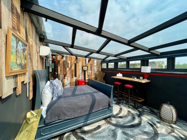 房型分為大雙人房、小雙人房、牧海雙人房、玻璃屋及邊境房,不管是哪種房型,房間都有透過精心設計,其中玻璃屋房型更是採透明玻璃為屋頂,晚上躺著就能看長濱夜晚的星空,連浴室也超有露天感,超大空間浴室配以乾濕分離淋浴間還有超美浴缸,不說還以為這裡是出租攝影棚呢!