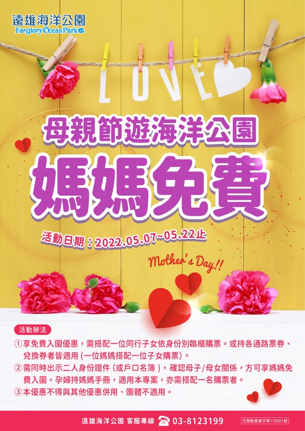 母愛最偉大,遠雄海洋公園祝全天下的媽咪們「母親節快樂」!