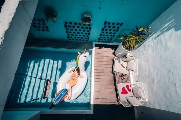 位於恆春老街巷弄中的「曲境Villa」擁有舒適寬敞的空間,搭配超狂樓中樓設計,還有半露天泳池、水上鞦韆,甚至店家還有提供各種造型泳圈可以租借拍照,讓人每分每秒都像在海島度假!