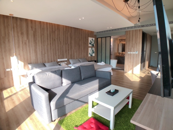 主打一層一戶的A館,進出使用密碼鎖安全又方便!採光超好,裝潢簡約的木質感讓人有溫暖家的感覺,大空間的舒適度!兩張加大的雙人床,還有一張沙發床可以睡到6個人!沙發床也很大,睡兩人還有超大的空間可以翻滾!
