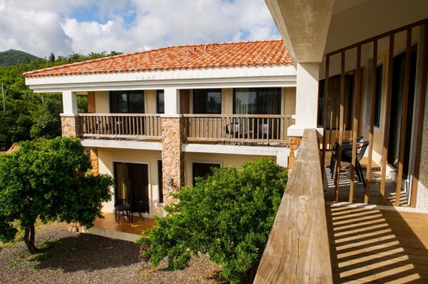 這間寬敞的客房設有精品設施,而且從陽台上可欣賞到海景。