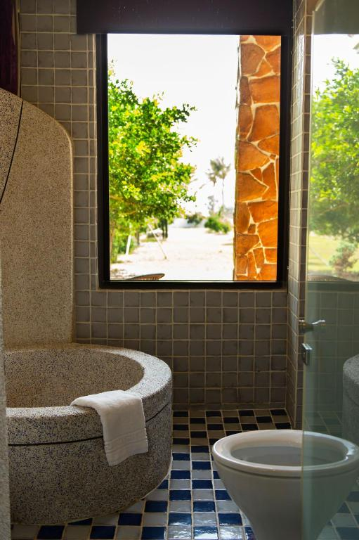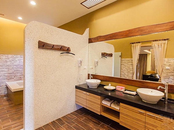 這間雙人客房設有空調、陽台和木地板,並配有平面有線電視和書桌。私人衛浴設有石造浴缸、淋浴設施、吹風機和免費盥洗用品。