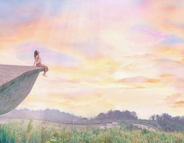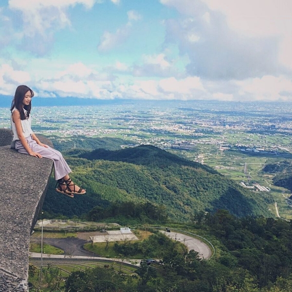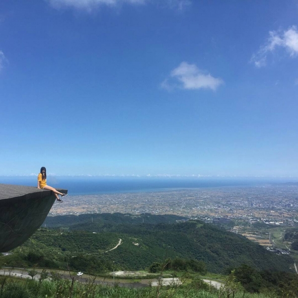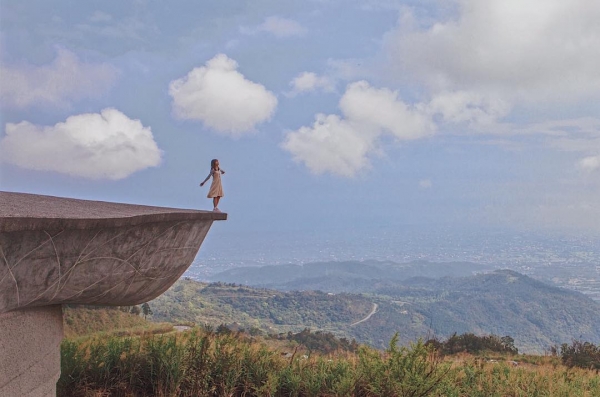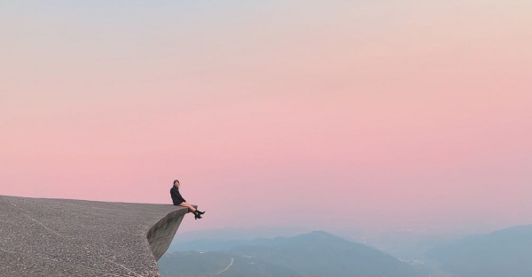 櫻花陵園位在大礁溪山上,視野十分遼闊,也是傳說中的鷹石尖2.0。建築物向外延伸的圓盤造型,就是打卡熱點超火紅。