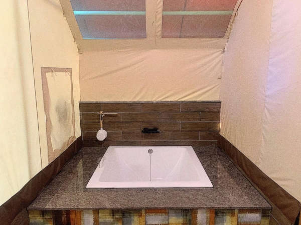 在帳篷内就可享受溫泉SPA泡湯!豪華露營帳棚內的專屬溫泉SPA,只要帶著一個行李就可以入住,免搭帳就是這麼爽!