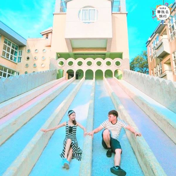 這間國小的學生也太幸福了吧!教室的二樓連接七個並排溜滑梯,想到一下課就能直接從二樓溜到一樓,完全省去走樓梯的麻煩,又可以玩得很開心。校名真的很符合學校的風格,想體驗國小單純歡樂的時光,週末就趕快帶相機來呀~