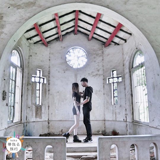 位於峨眉湖畔附近,已經荒廢了快30年。獨特的西班牙式建築,對稱的十字架窗型設計,正中央的美麗圓形花窗是妝點教堂的靈魂。室外充足的光線聚焦在身上根本天然的打光板!獨特氛圍的景物也很適合暗黑系列唷...