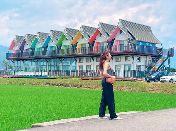 在ig上看到人家拍的照片~有一排彩虹色的木屋,是位於宜蘭礁溪的民宿「天空島上的小木屋」。座落在大片田中央,放眼望去是綠油油的稻田圍繞著,抬頭看是整片遼闊天際,配上超繽紛小木屋,拍起來簡直美得像幅畫!