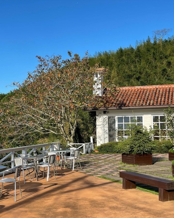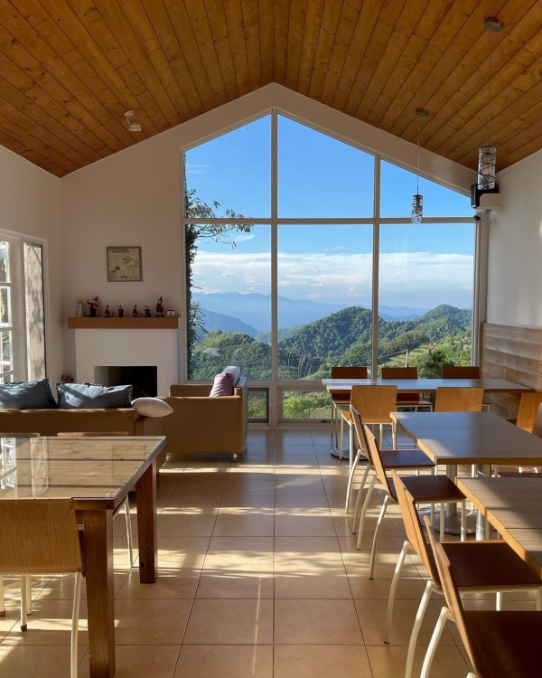 室內以玻璃落地窗設計為主,讓自然光線可以自由灑進室內,也能直接賞戶外美景,而戶外還有個公共空間,露天的咖啡席,可以飽覽整片山巒美景,還有一個可愛的鐘塔,很適合打卡拍照~