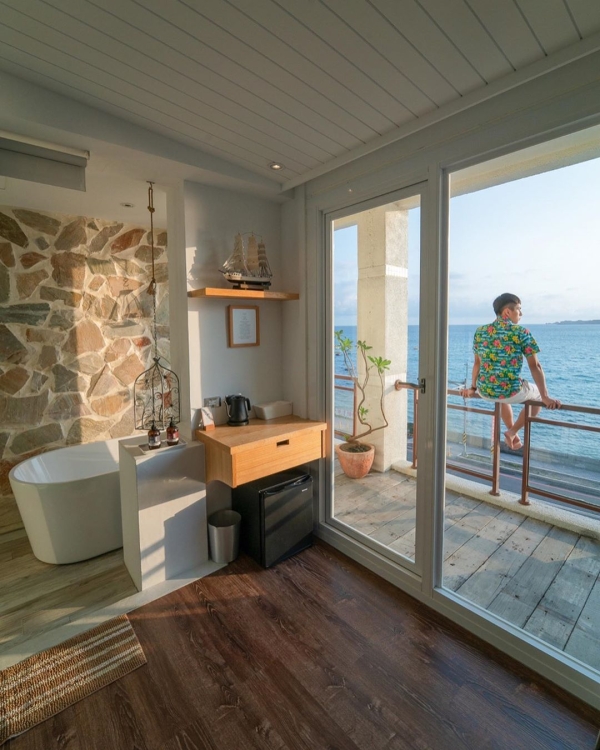 迷路小章魚內總共有7間房,而房型主要分為兩種,海景露台浴缸房以及山景露臺浴缸房,皆擁有私人獨立的露臺可以一賞美景,房內也幾乎都有浴缸可以泡澡,泡在浴缸裡就能直接賞山景海景,多麼愜意阿~