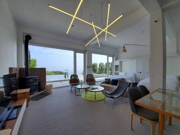 房內擁有近20坪、挑高近4米的住宿空間,寬敞又舒適,加上大面積落地窗設計,能將眼前的小丘及海景盡收眼底!另外還附有燒柴壁爐(欲使用壁爐請加購)、獨立露台,天氣好時好適合坐在戶外放空啦!