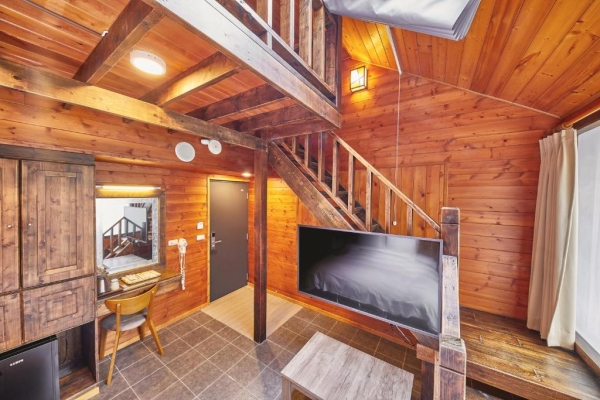 家庭最喜歡的樓中樓房型,設計上讓空間更加寬敞,也夠孩子們活動玩耍,設備應有盡有,也有獨立湯池,夜晚一家人一起泡澡賞景,好浪漫!
