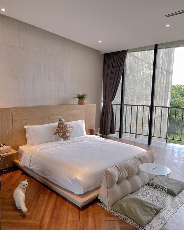 房內坐擁太平洋海景以及冬山河景的絕美景觀,極簡的清水模建築設計,而且還是寵物友善民宿,吸引許多客人來此拍美照與帶毛小孩渡假。