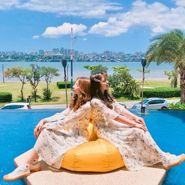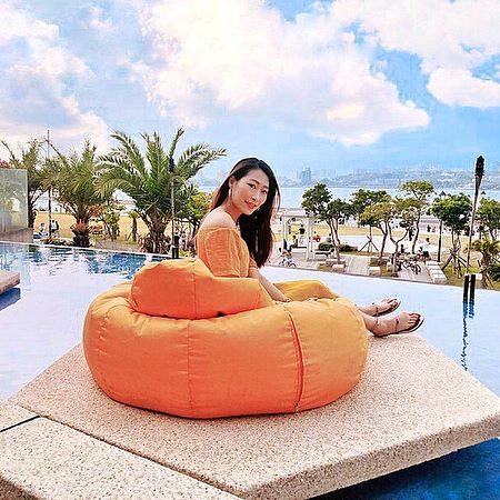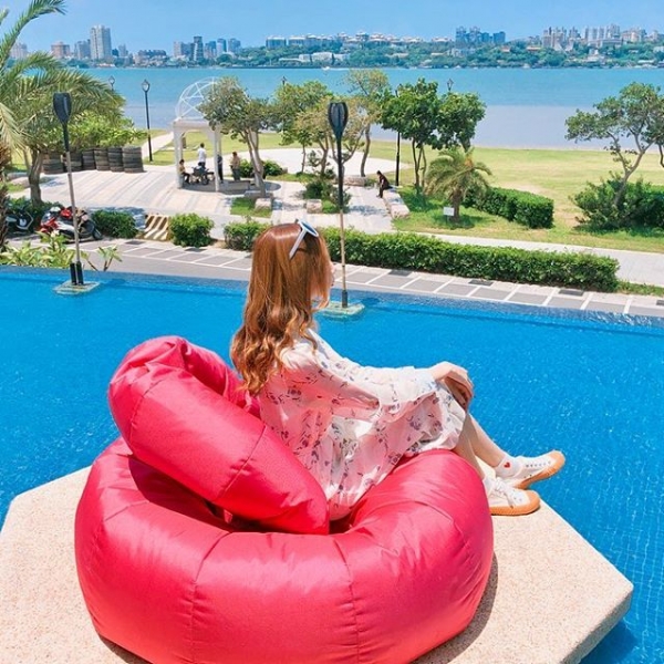 最容易洗版IG的就是這個「水面上的懶人沙發」,以淡水河岸為背景拍過去超像在海島國家渡假的!