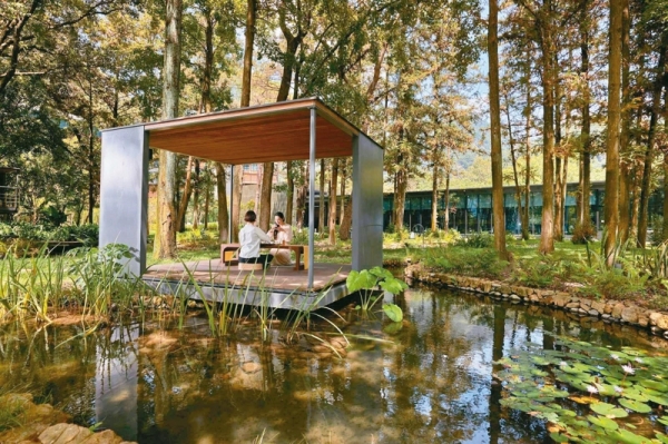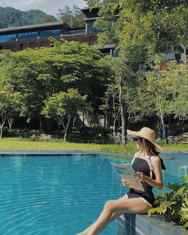 周邊蒼翠碧綠,還能在森林池畔邊戲水,慵懶地躺著休息,這才是度假的真諦呀!