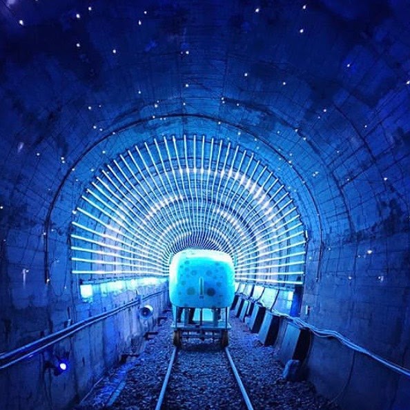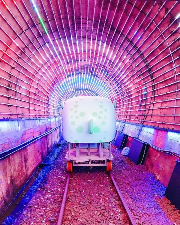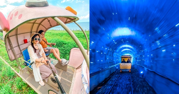 整段鐵道從八斗子到深澳車站,路程不會太遠,單趟1.3公里,其實很快就能踩完。而沿路最吸引人的就是「燈光隧道」,彷彿置身於銀河系,真的超級浪漫~