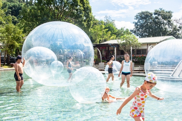 公園內有三大水池,都是引用天然的山泉水,水池中放上巨型泡泡球可以遊玩,還可以美拍!還有開放廁所及淋浴間可以盥洗,不過只有假日才有開放喔!