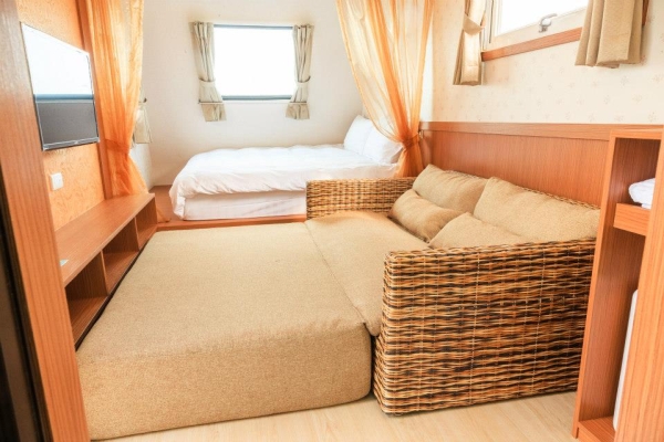 露營車內有一張大床還有沙發,沙發也可以拉成床!想要看電視也有,露營內還有提供WIFI可以上網!讓你顛覆露營的克難印象,懶人的露營免裝備,入住也像在飯店的感覺!
