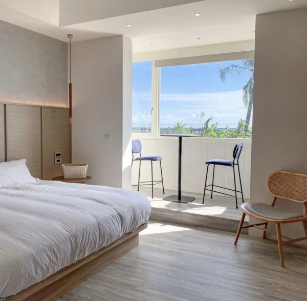 此房型位於二樓,但因樓層較低、視野與海平面平行;欲選擇樓層更高的旅客請選臥榻海景房型!