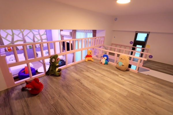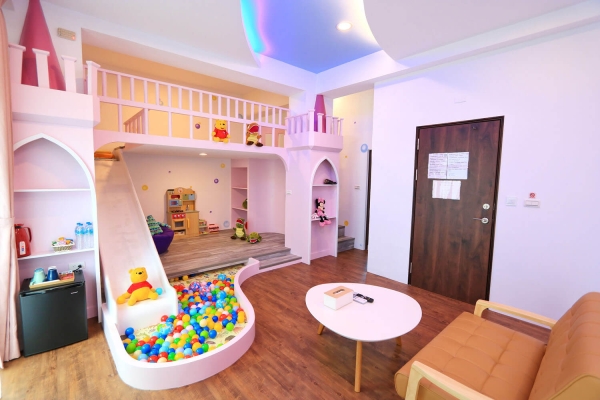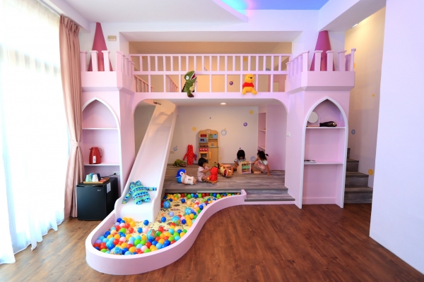 這絕對是親子放電天堂房型,一座巨大粉紅城堡直接搬進房,還有球池溜滑梯,以及神祕的樓中樓,小朋友看到絕對不想回家啦!