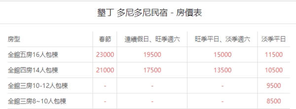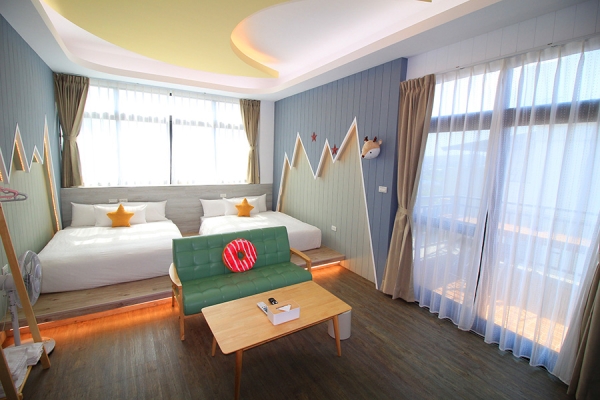 房型分為2人房以及4人房,每間房間的風格都不同,卻都很有特色,尤其是親子房行,保證讓孩子為之瘋狂!如果多人入住可以選擇包棟方案,8~14人都可以包棟!