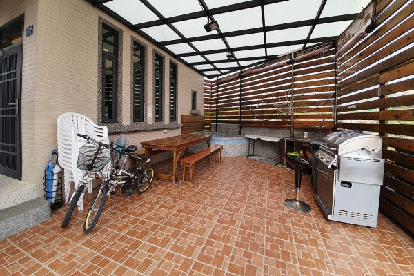從外觀就看得到獨立的烤肉區,還有戶外庭園、戲水池,入內後超寬敞的大廳,暖色系的配置頗有北歐風的感覺~整體感受相當溫馨呢!