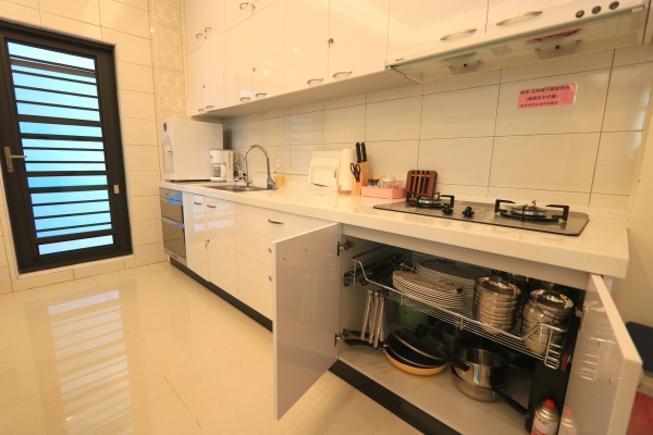 除了戶外庭園烤肉區之外,室內也有廚房,鍋碗瓢盆應有盡有,想吃什麼就煮什麼,即便不想烤肉也能輕鬆料理餐食。
