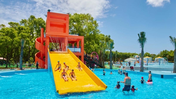 花蓮暑假限定「知卡宣綠森林親水公園」占地約19公頃,園區有六大主題水池:適合小朋友玩耍的漂漂河、一般戲水池、泡腳池、水槍和打瀨浴,以及大人喜歡的超刺激360度、720度迴轉大滑水道、人工衝浪池等,各個年齡層都能玩得很開心!