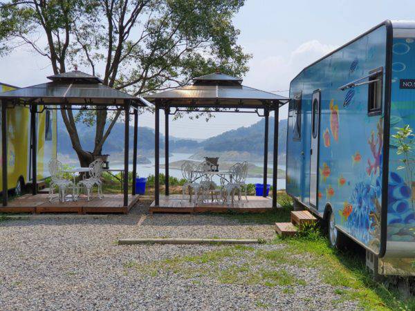 另外,民宿也有提供豪華露營車,想擁有邊烤肉邊賞湖景的旅客,可選擇豪華露營車。內裝不僅跟飯店一樣高級之外,車頂還設置了天窗,讓你夜晚躺床就能數星星,好適合情侶們來一趟浪漫之旅呀!