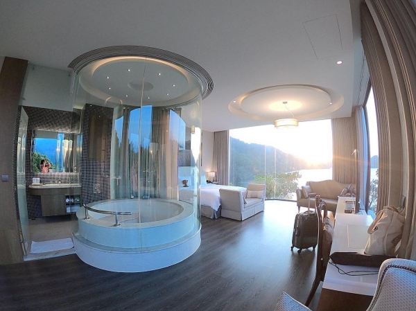 每間房都擁有大面積落地窗,讓你待在房間就能一覽絕美湖景啦!