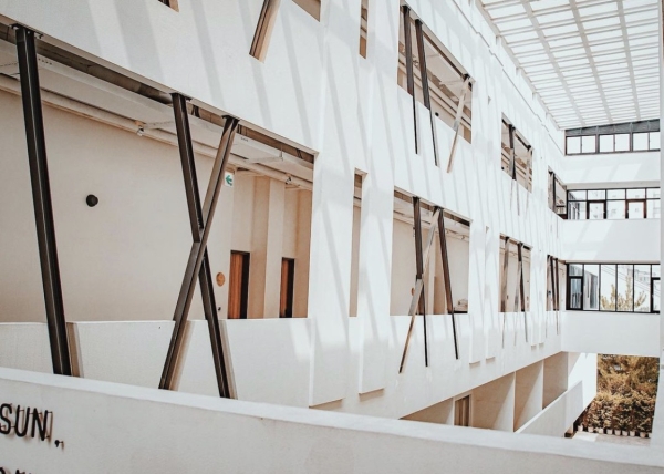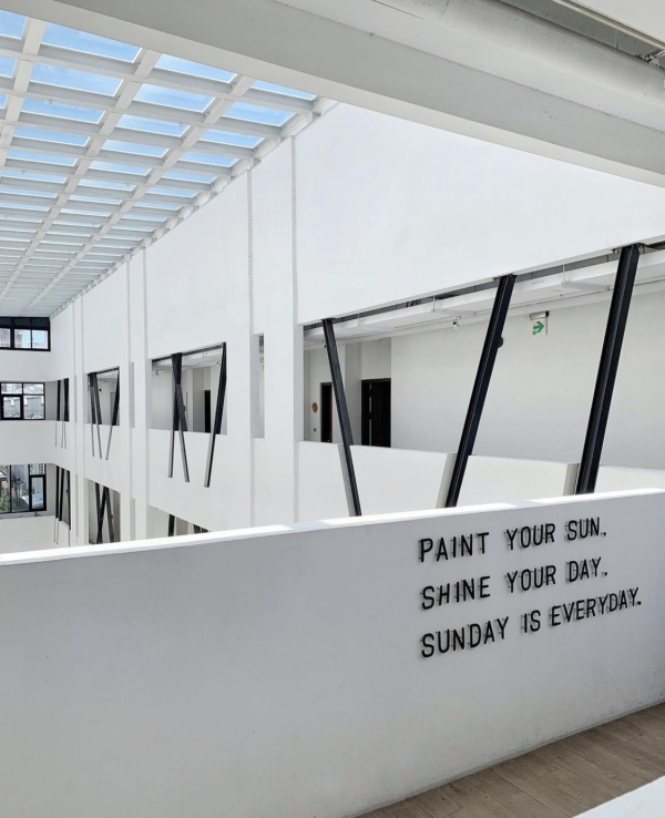 位於嘉義大雅路,呈現白色幾何堆疊的外觀,宛如美術館般的優雅外型,闡述出簡約的設計風格,客房則融入些許活潑的色調,亮眼吸睛。並且結合阿里山的意象!
