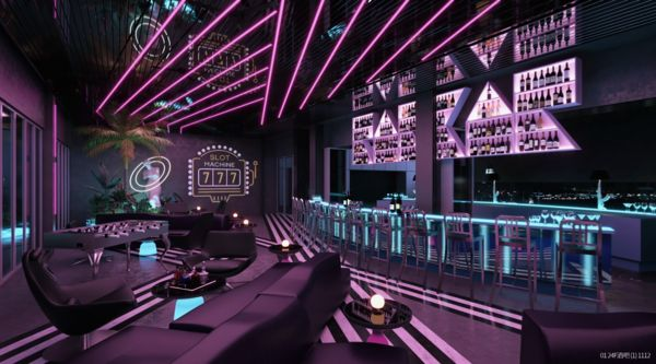 池畔邊則有2間風格餐飲酒吧餐廳進駐,包括以板前料理提供日式烤物串燒的「酉名酉丁」餐廳,以及風格調酒系酒吧「RAR BAR」,為全台第一間以Cyberpunk為設計風格的酒吧,除了晚上提供調酒之外,中午、下午茶時段也將販售輕食。