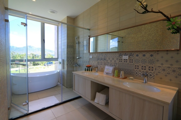 緩緩走入,不黏膩的兩人世界,並非黑白分明,而是黑與白相依共存~總共106坪超大面積,寬敞舒適,獨享大泳池,乾濕分離的衛浴,還有超桑的雙人大浴缸,來度假就是要選這麼讚的住宿!