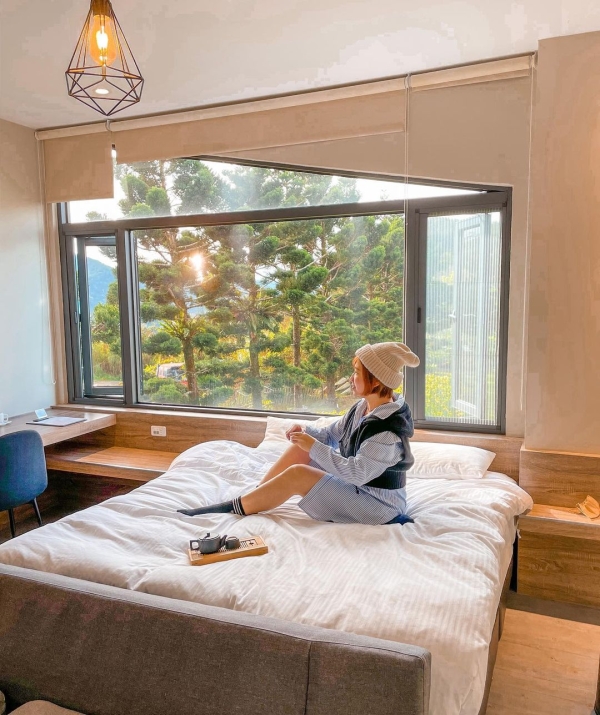 一樓為咖啡廳,二樓則是住宿區,共有十間房,也有提供包棟服務!超吸睛豪華大窗雙人房,擁有無敵觀景窗,看出去就是雲霧美景,療癒人心!